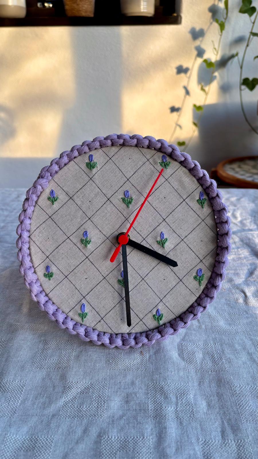 Textile wall clocks are for those who love cheerful and functional decorative pieces. The clocks are hand-embroidered on fabric with an exclusive design from the atelier. They include a structural wooden layer. Each one has its own special detail – no two are alike!