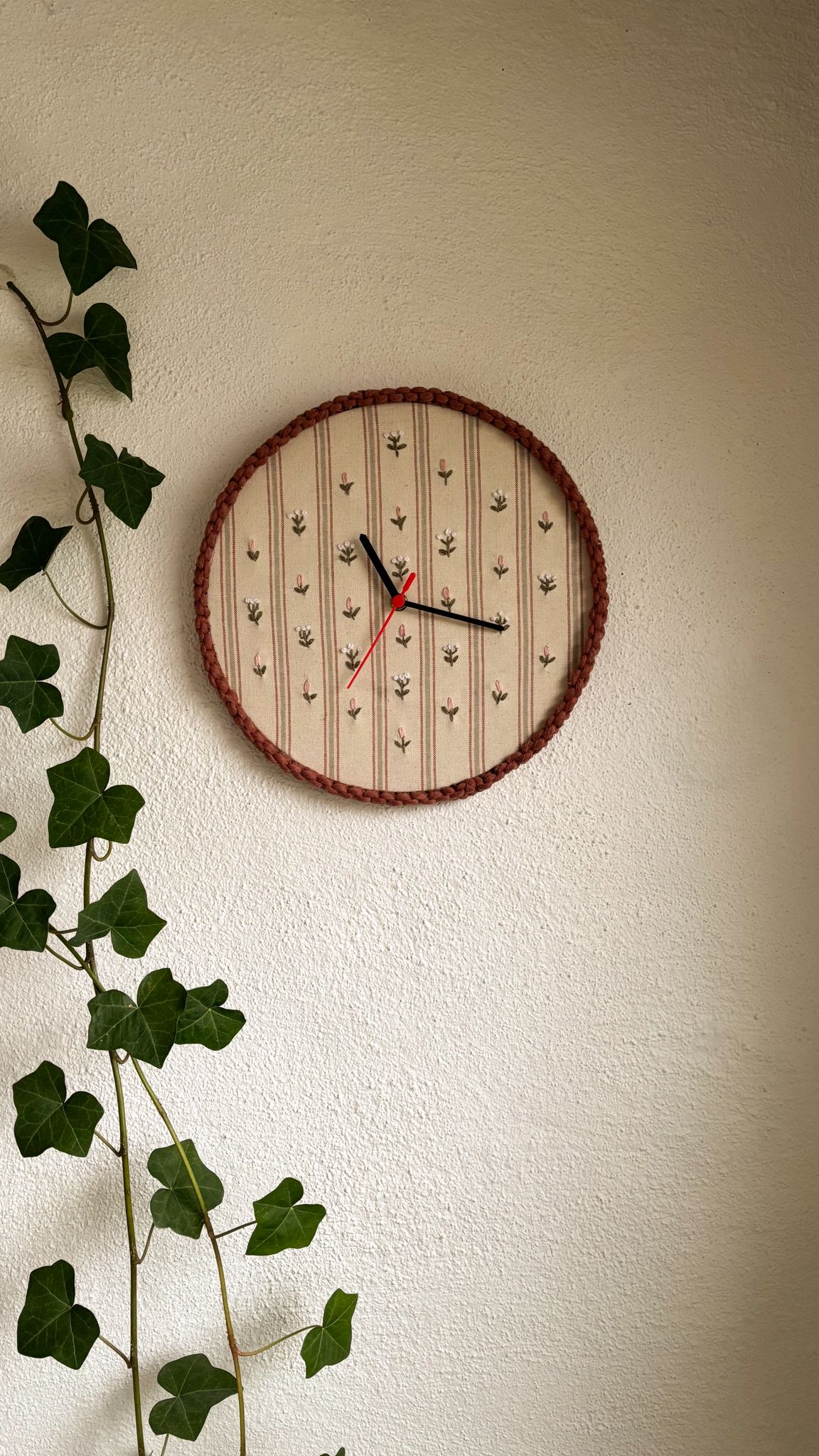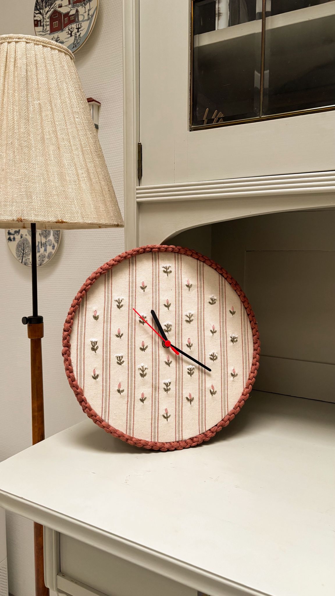 Textile wall clocks are for those who love cheerful and functional decorative pieces. The clocks are hand-embroidered on fabric with an exclusive design from the atelier. They include a structural wooden layer. Each one has its own special detail – no two are alike!