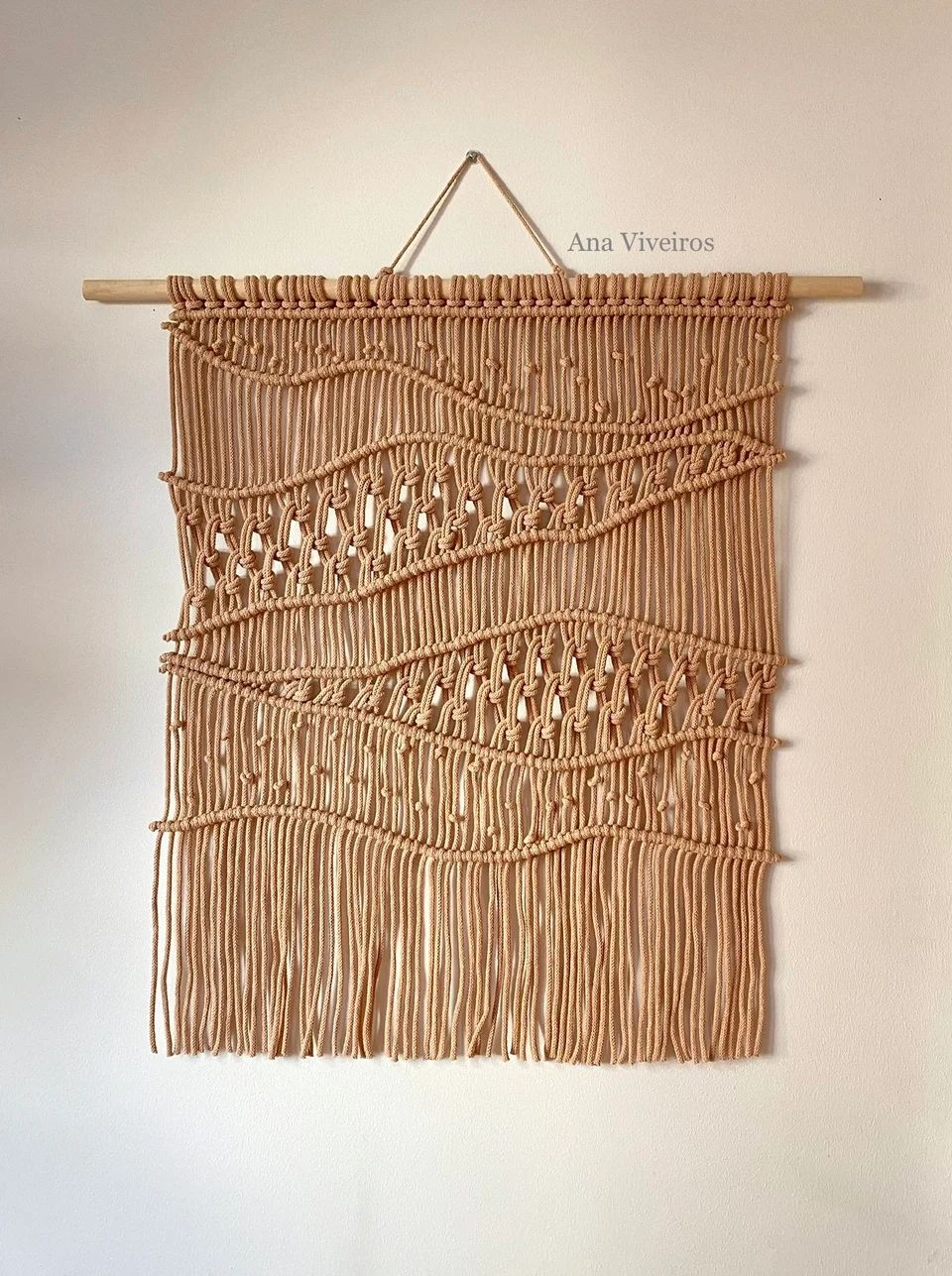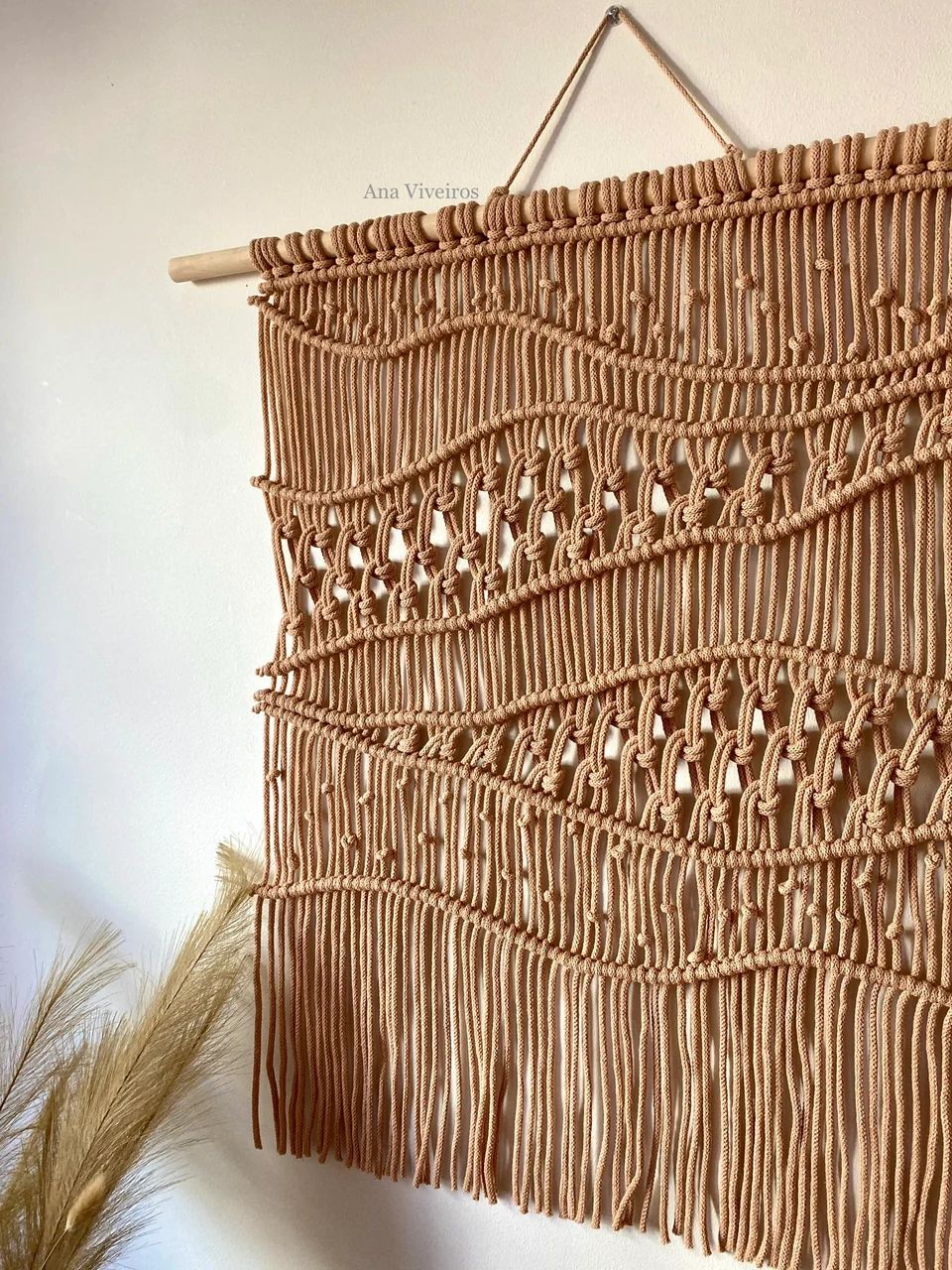 The Maré wall hanging is inspired by the curves and beauty of Brazilian beaches. It portrays the sand that shines reflecting the sun and the gentle tide. It is made with modern macrame technique and brings uniqueness and elegance to the decor.